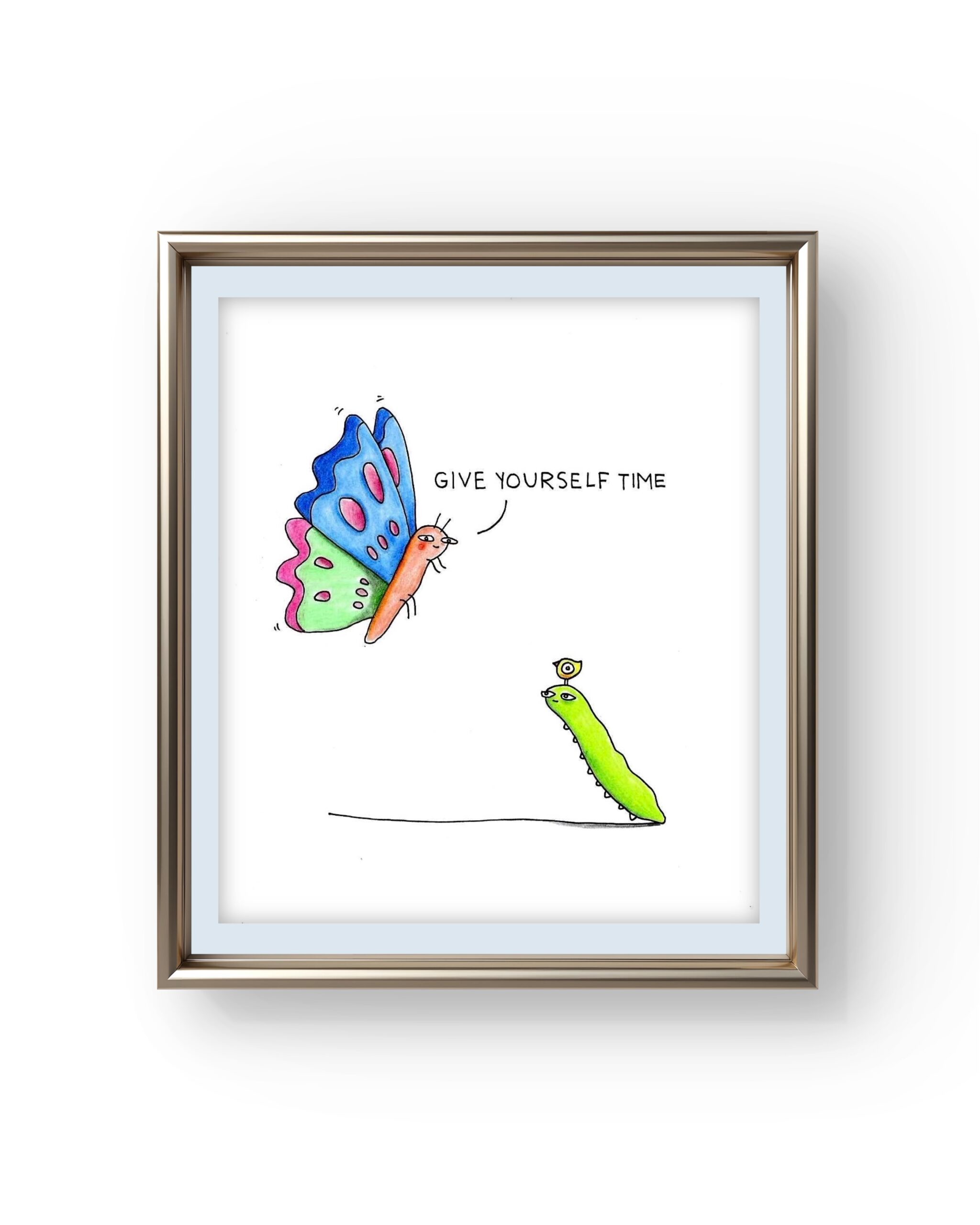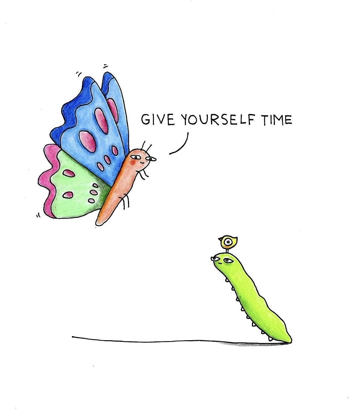 Give yourself time signed hand drawing original. Material used black pen and pencils on hard paper 250g. Size A5.