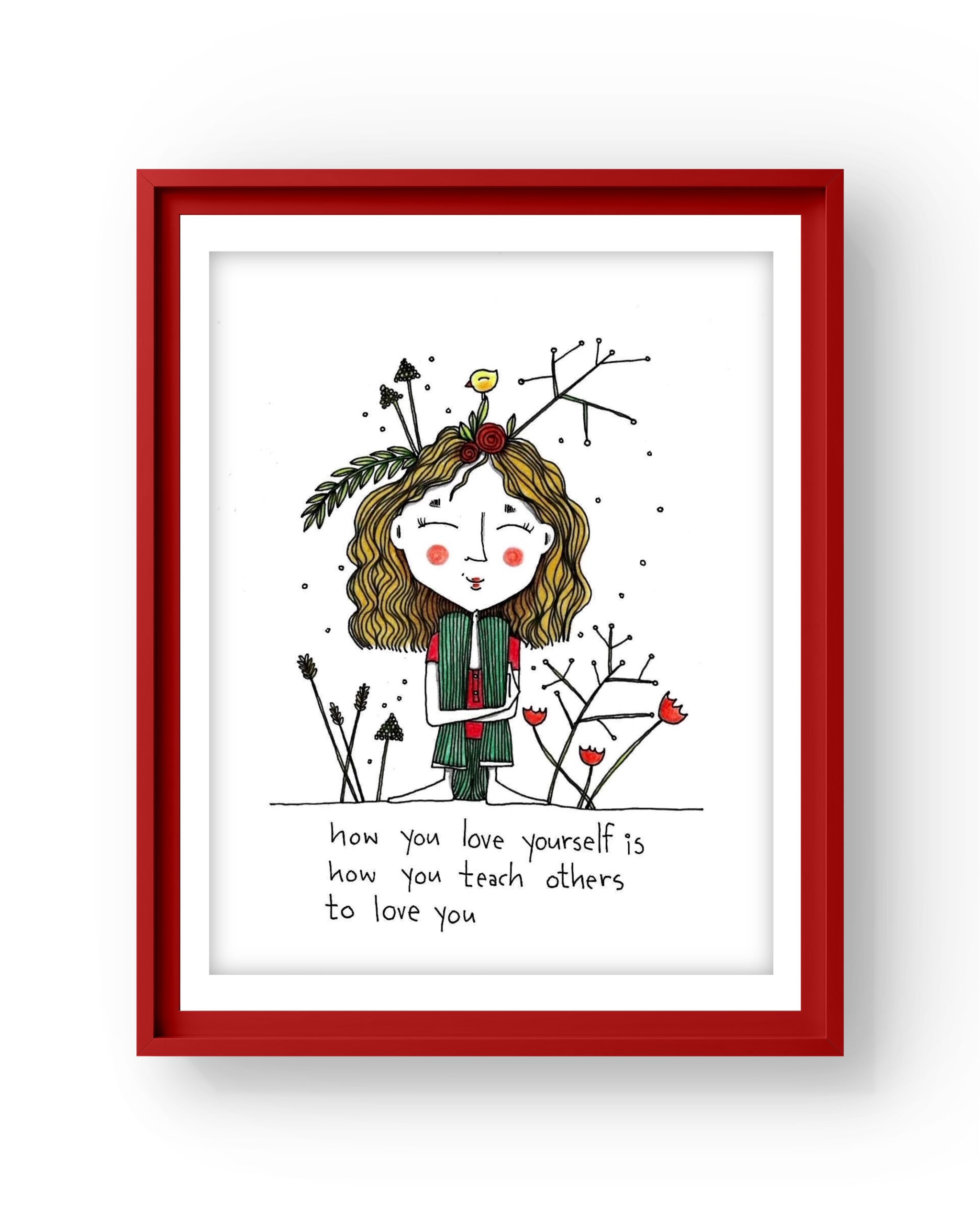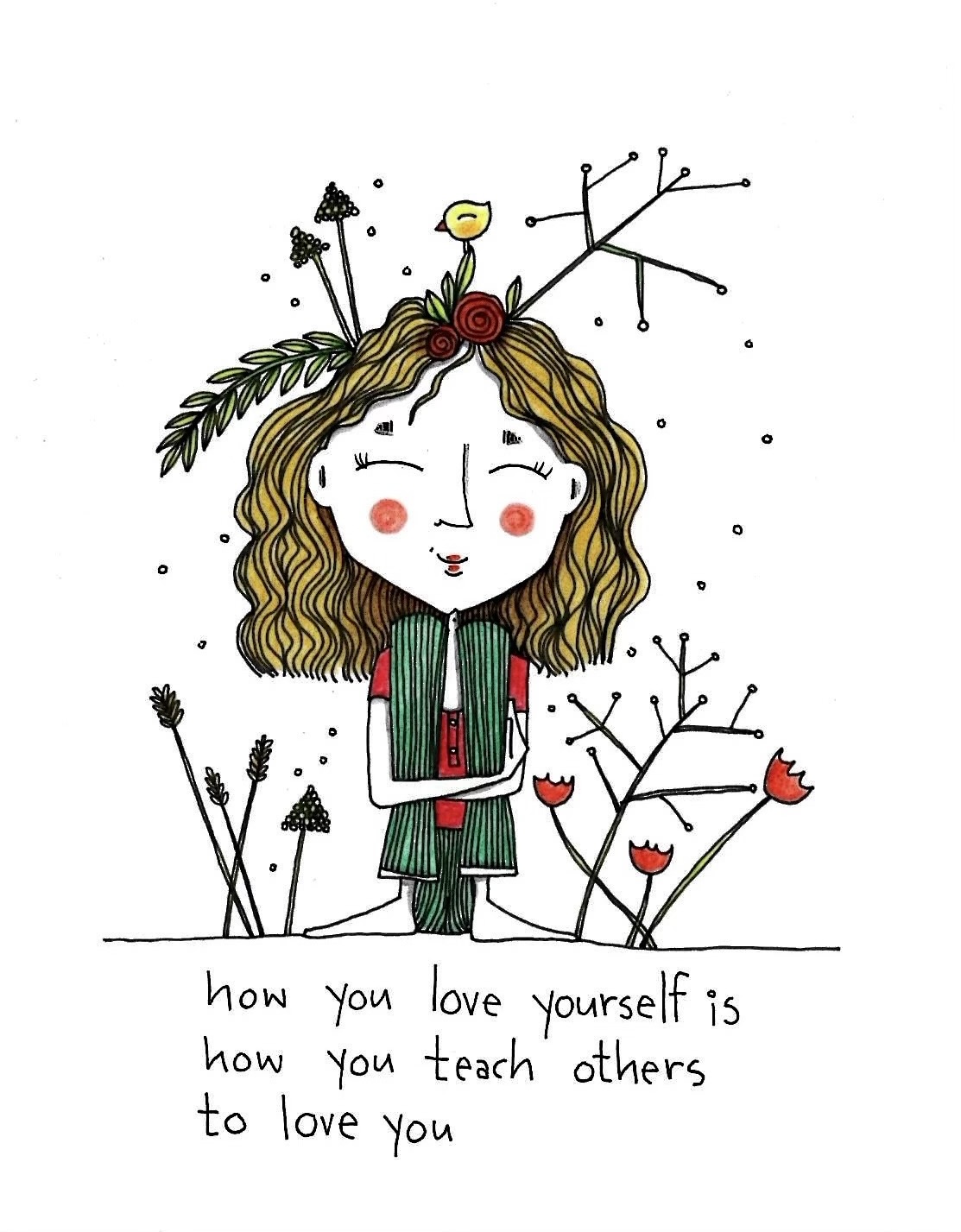 How you love yourself signed hand drawing original. Material used black pen and pencils on hard paper 250g. Size A5.
