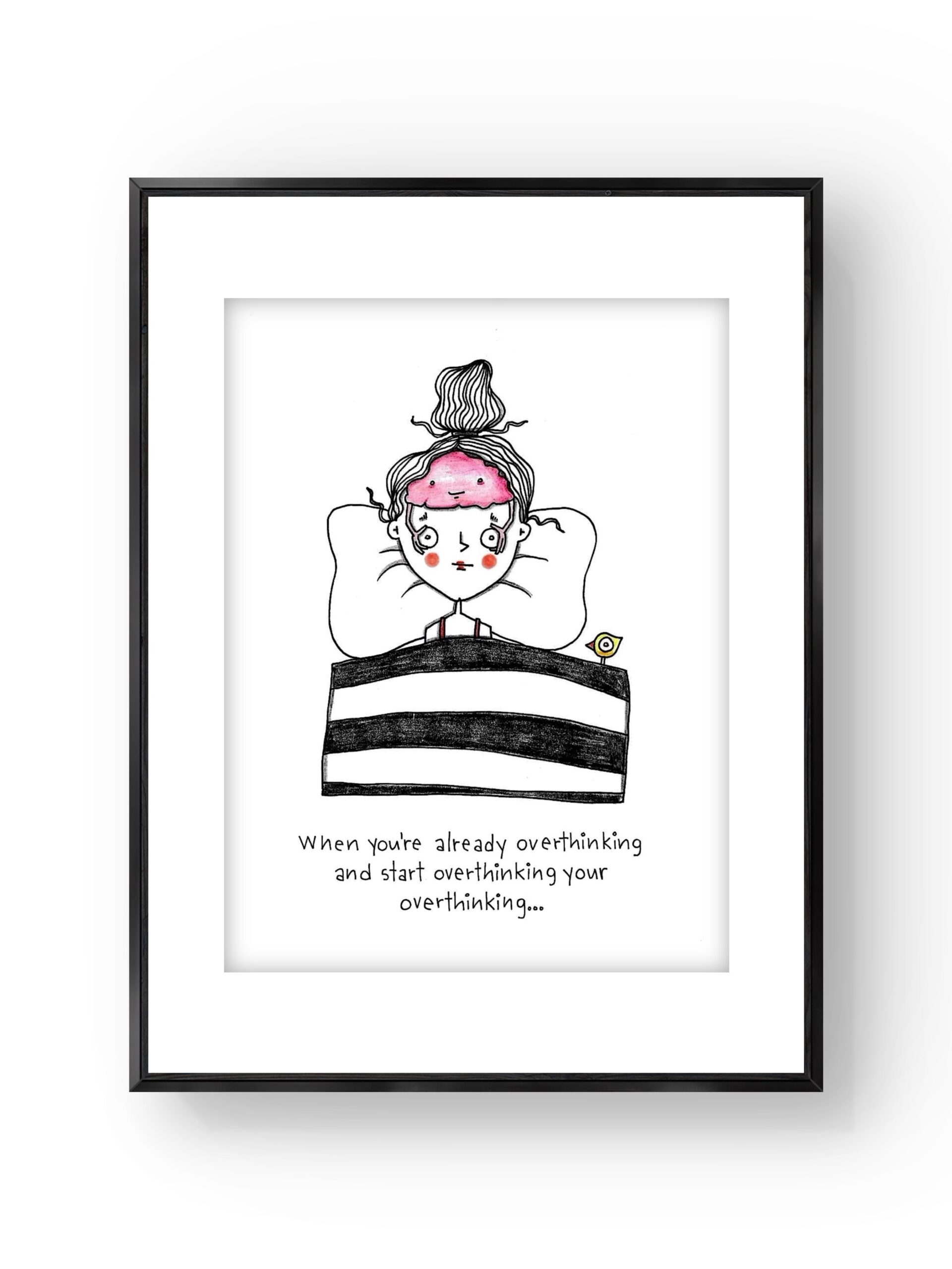 When you’re already overthinking signed hand drawing original. Material used black pen and pencils on hard paper 250g. Size A5.