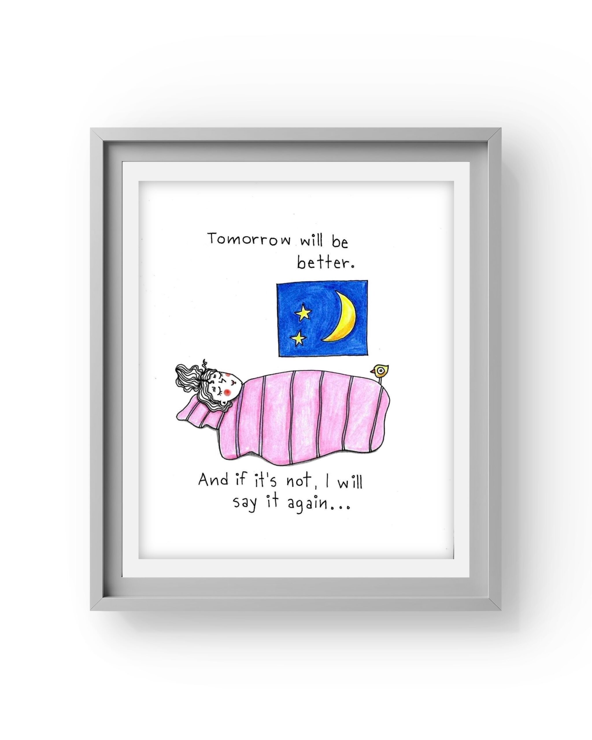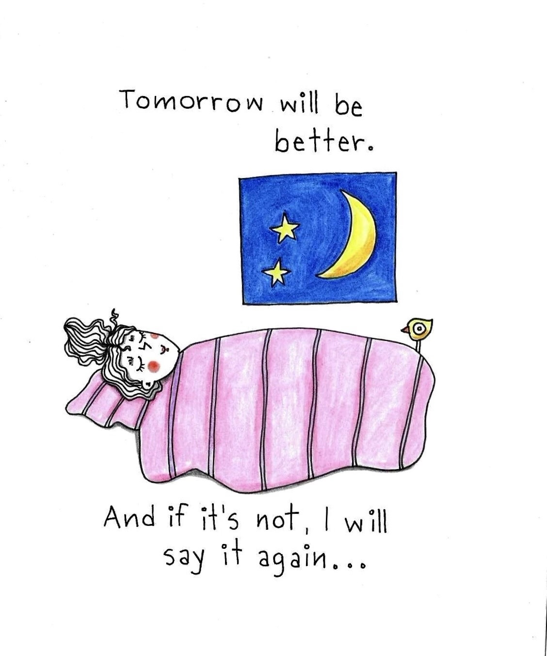 Tomorrow will be better. signed hand drawing original. Material used black pen and pencils on hard paper 250g. Size A5.