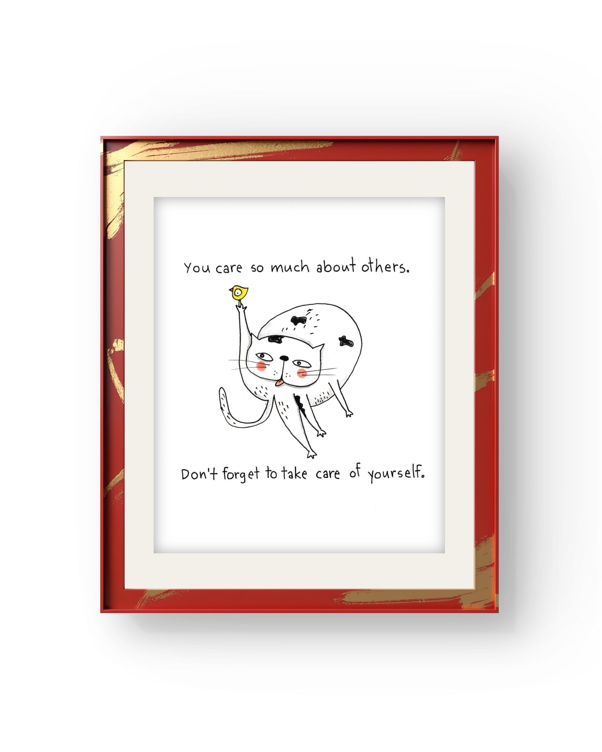 You care so much signed hand drawing original. Material used black pen and pencils on hard paper 250g. Size A5.