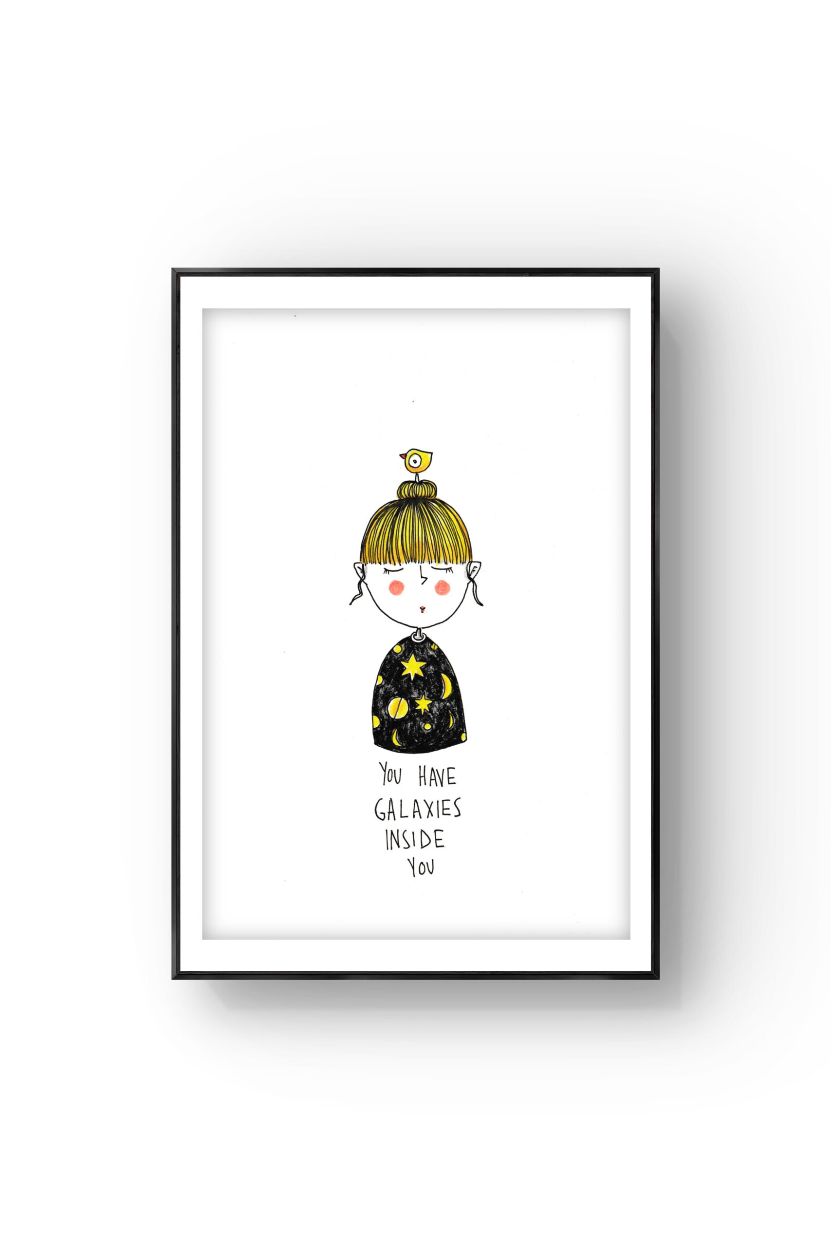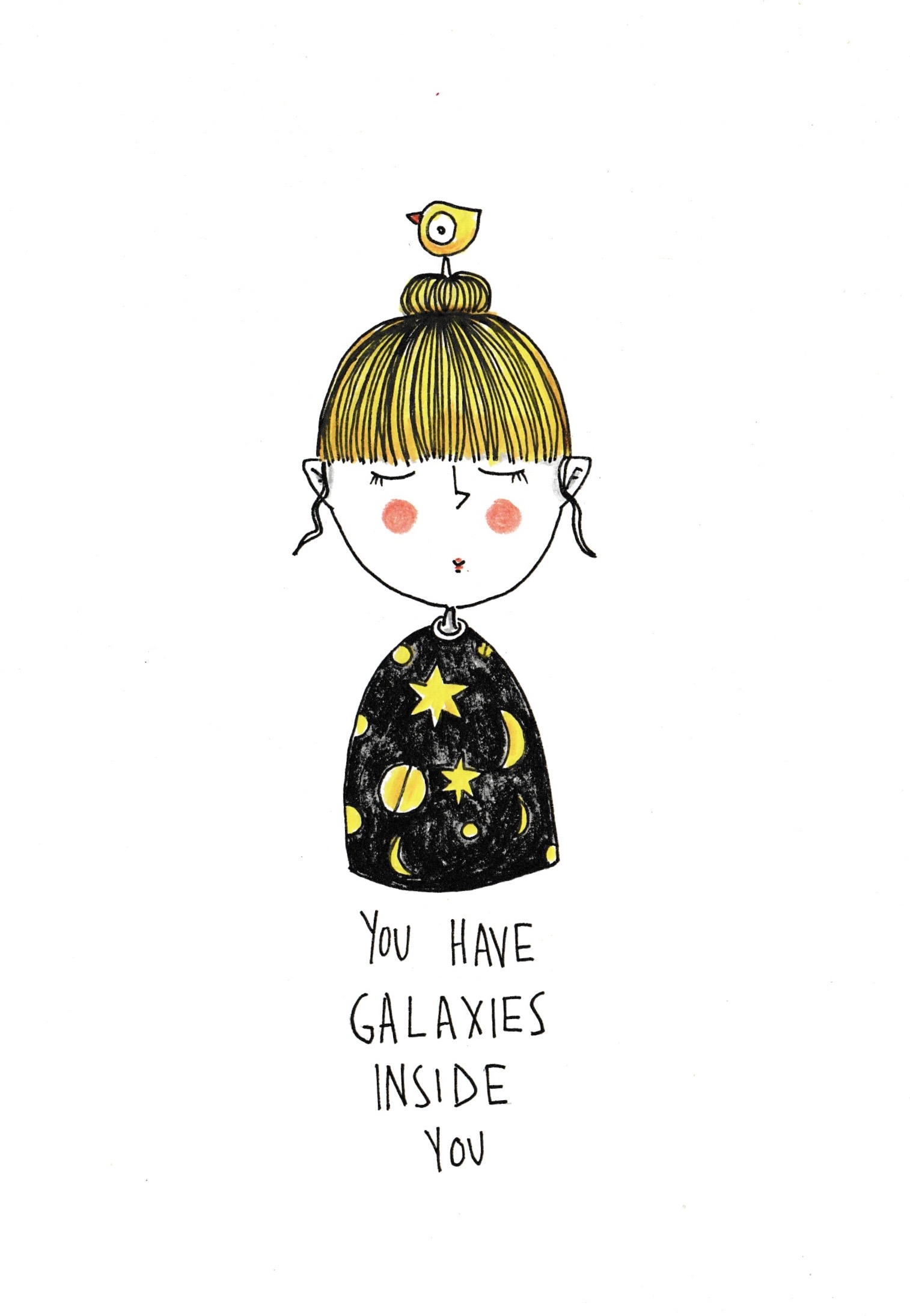 You have galaxies signed hand drawing original. Material used black pen and pencils on hard paper 250g. Size A5.