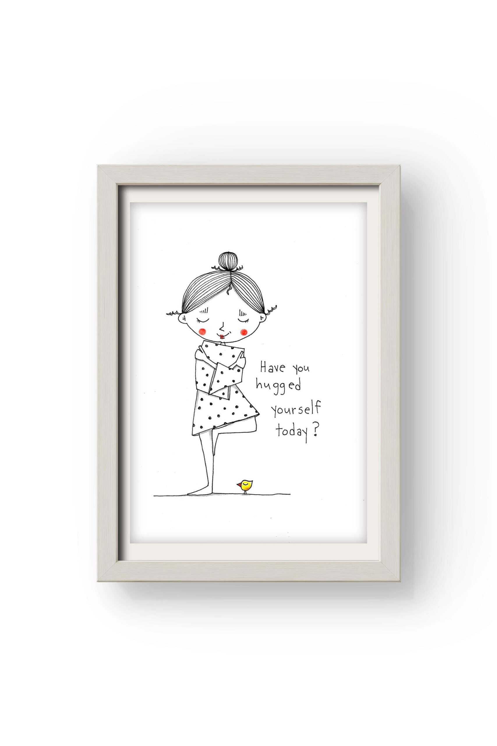 Have you hugged yourself signed hand drawing original. Material used black pen and pencils on hard paper 250g. Size A5.
